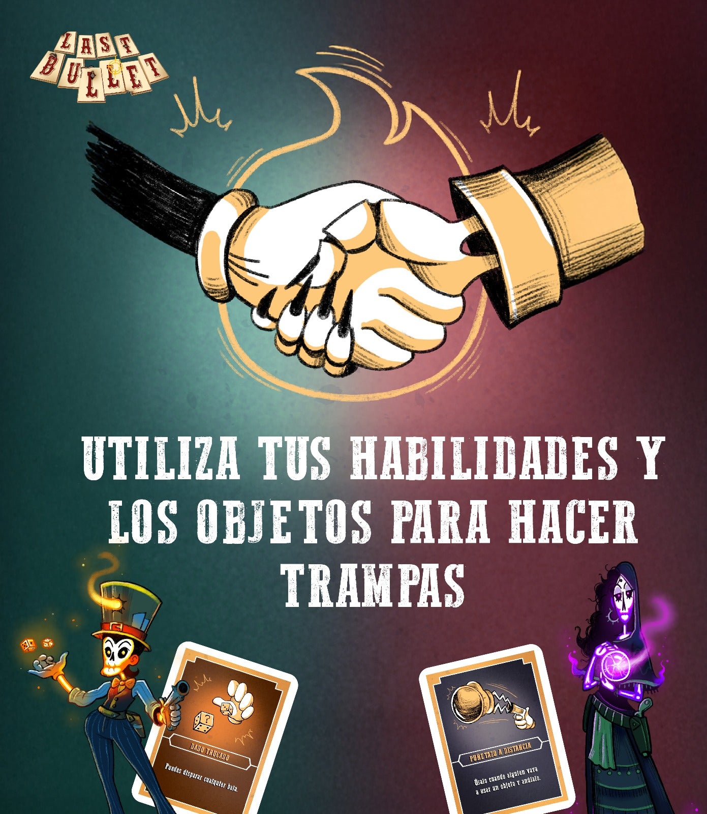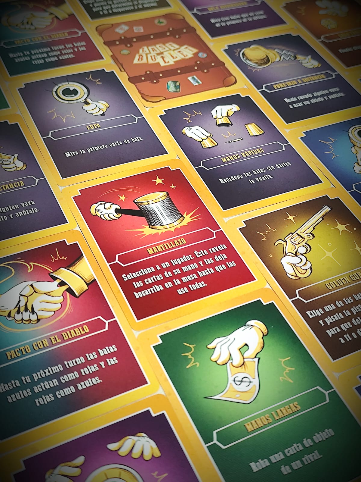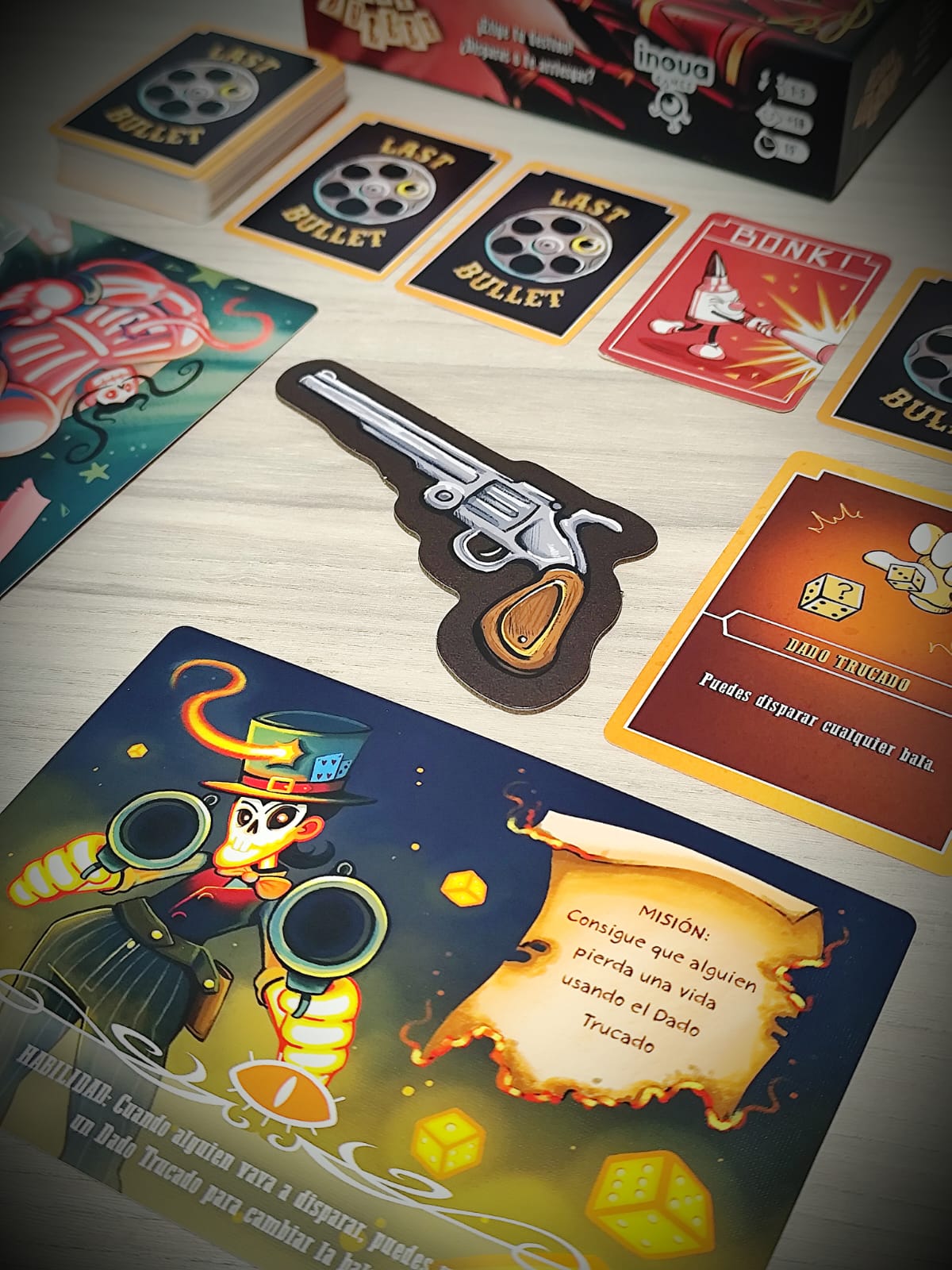 En cada partida barajas el destino: 10 balas ocultas esperan en la mesa, algunas inofensivas… otras letales.Cada jugador elige un personaje con habilidades especiales y empieza con objetos que pueden marcar la diferencia.En tu turno deberás decidir: ¿Te disparas a ti mismo para intentar ganar un objeto extra?¿O apuntas a un rival, arriesgándote a que la bala lo hiera… o lo beneficie?Cada disparo revela una verdad: si la bala es buena, hay recompensa; si es mala, alguien pierde una vida. Cuando las balas se agotan, se revelan otras 10, hasta que solo quede un jugador en pie. A veces sobrevivir es la mejor recompensa.Estrategia, farol y un poco de suerte.¿Sobrevivirás a la última bala?