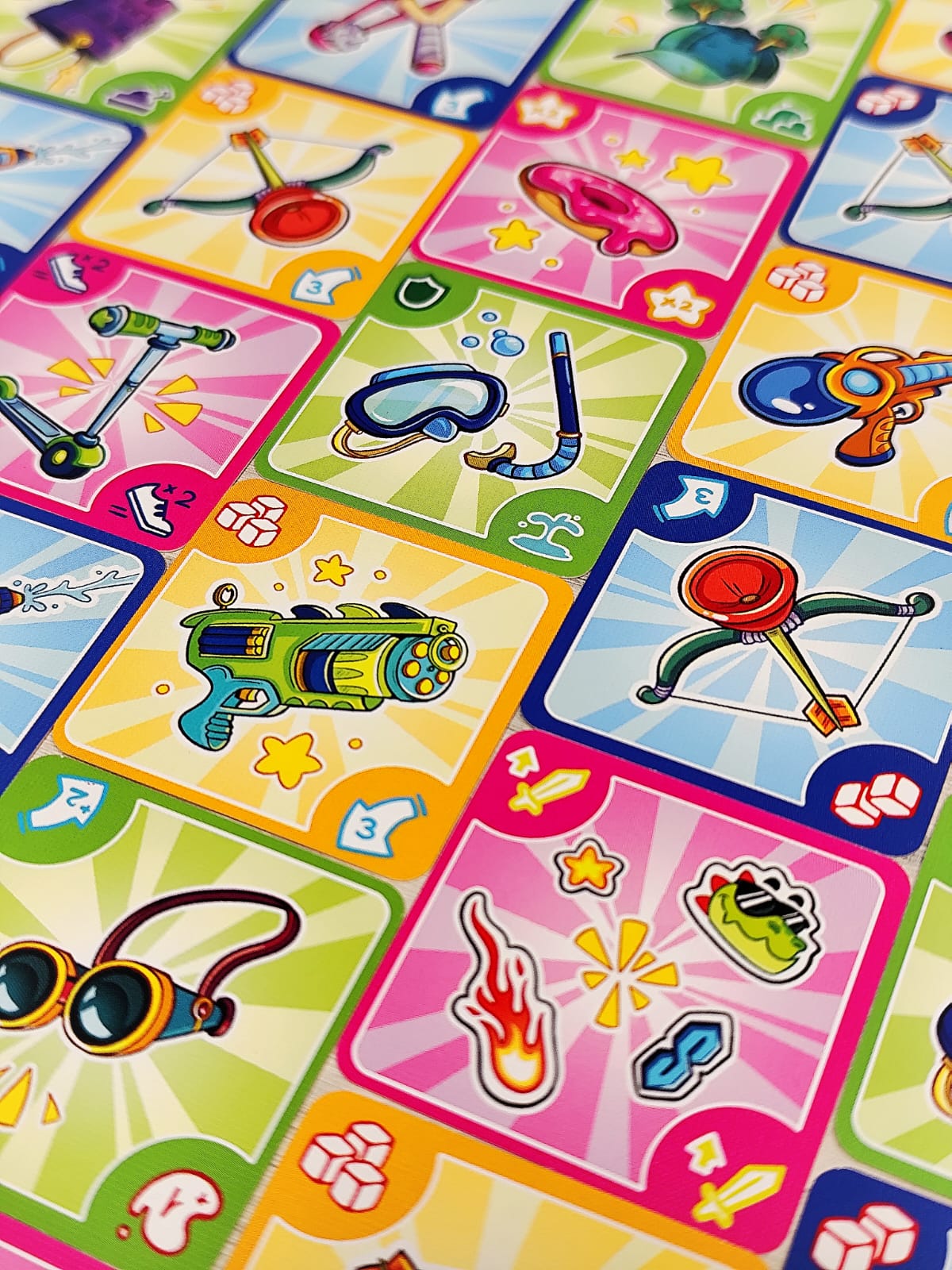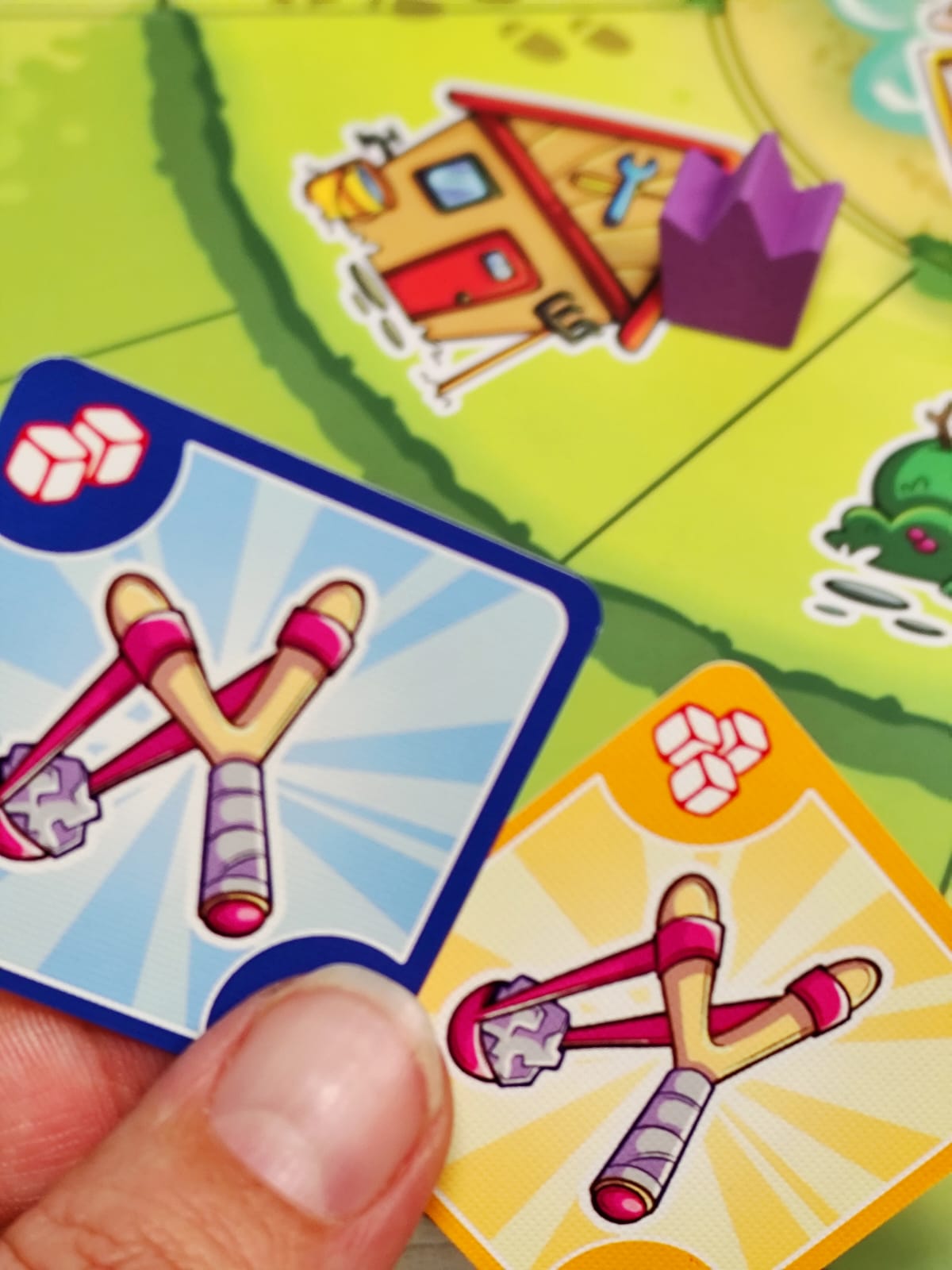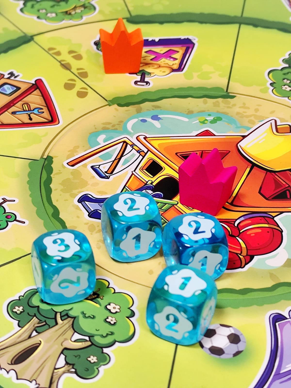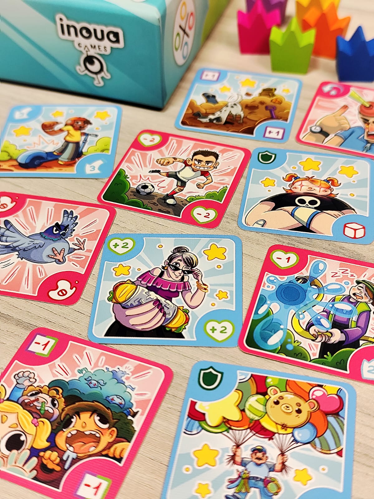 Bienvenido al barrio, donde lo único que importa es llegar al castillo central y demostrar que eres el verdadero rey del parque. Muévete entre columpios, areneros y toboganes mientras recoges armas, armaduras y consumibles. Pistolas de agua, tirachinas, flechas con ventosa… ¡todo sirve para derribar a tus rivales! Cada turno tendrás que moverte, aprovechar la casilla en la que caes y disparar si alguien está a tu alcance. Pero cuidado: el parque está lleno de encuentros inesperados, algunos te darán ventajas… otros te pondrán en serios problemas. Cuando alcances el castillo central tendrás un poder devastador: podrás disparar a todos los jugadores sin límites.